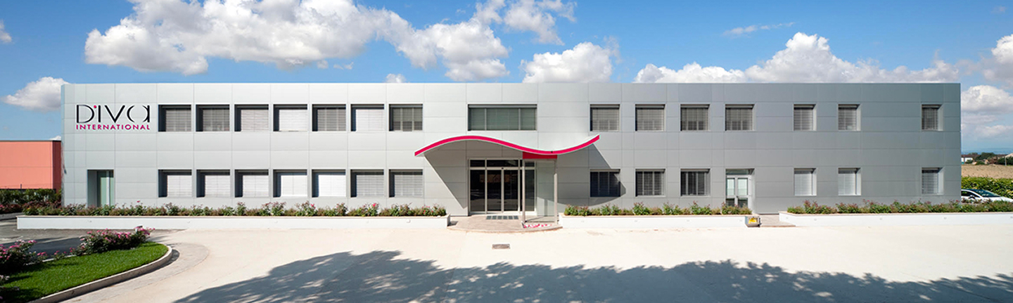 Lo stabilimento Diva International nasce a Spello nel 1999 con circa 2.500 mq iniziali di estensione tra uffici, produzione e magazzini. Il primo ampliamento avviene nel 2009 e si raggiunge una superficie di 10.000 mq circa, per poi culminare nel 2018 con il secondo nuovo edificio comprensivo anche questo di uffici, produzione e magazzini per uno sviluppo complessivo di tutta l’unità aziendale di oltre 20.000 mq.